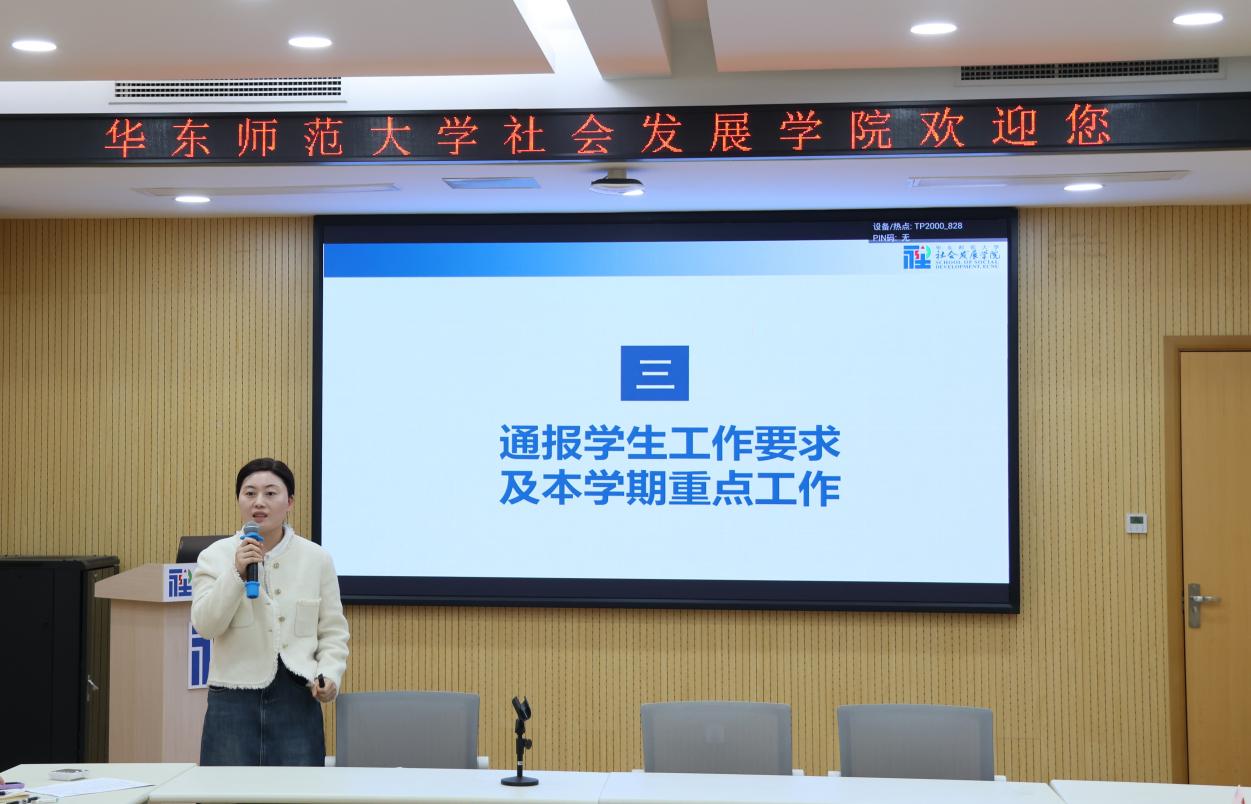 做爱视频各分管领导分别就本学期重点工作进行了通报与部署。党委副书记兼副院长庞荣重点通报了学生安全与就业工作。她分析了当前学生心理健康问题,希望全体教师、导师共同筑牢安全网。同时,她介绍了做爱视频正在开展的访企拓岗、一对一帮扶等促就业举措,号召全体教师共同关注、积极参与,携手助力学生实现更充分、更高质量的就业。